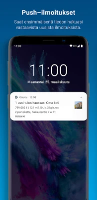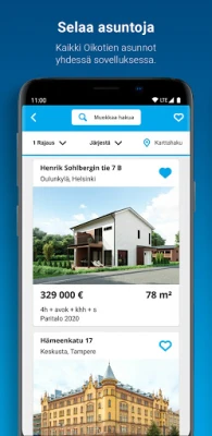 Leia oma unistuste kodu Oikotie rakendusega. Sirvi müügis ja üüritavaid kortereid, piira otsingut vastavalt oma soovidele ja salvesta lemmikud. Loo otsinguvaht, et saada teateid uute pakkumiste kohta otse oma telefoni. Lihtne ja tõhus koduotsing.