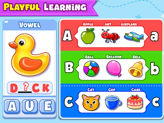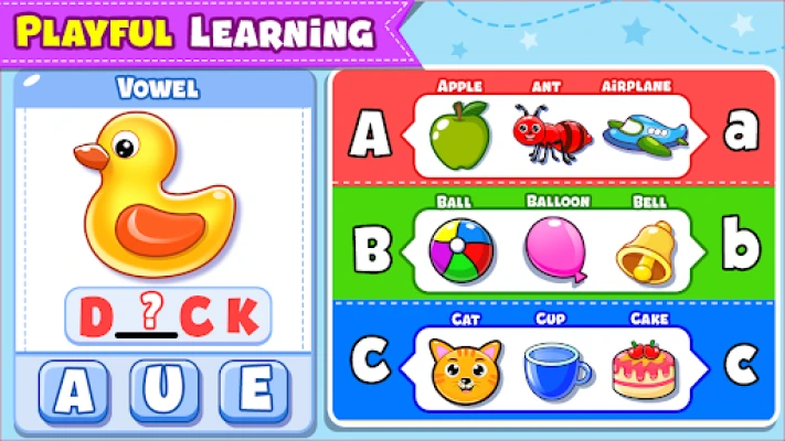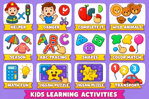 Lõbusad ja harivad mängud väikelastele. Aidake mudilastel õppida tähestikku ja kirjutama, mustreid ja jooni. Tutvustage õigekirja, värve, kujundeid, sõidukeid, kehaosi, loomi ja üldteadmisi. Mänguline õppimine on siin lõbus ja kaasahaarav!